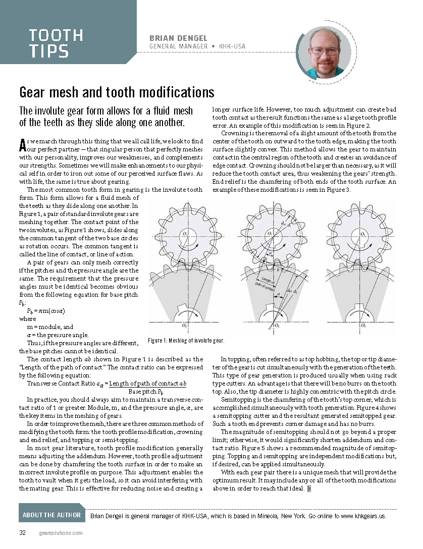 The Involute Gear Form Allows for a Fluid Mesh of the Teeth as They Slide along One Another