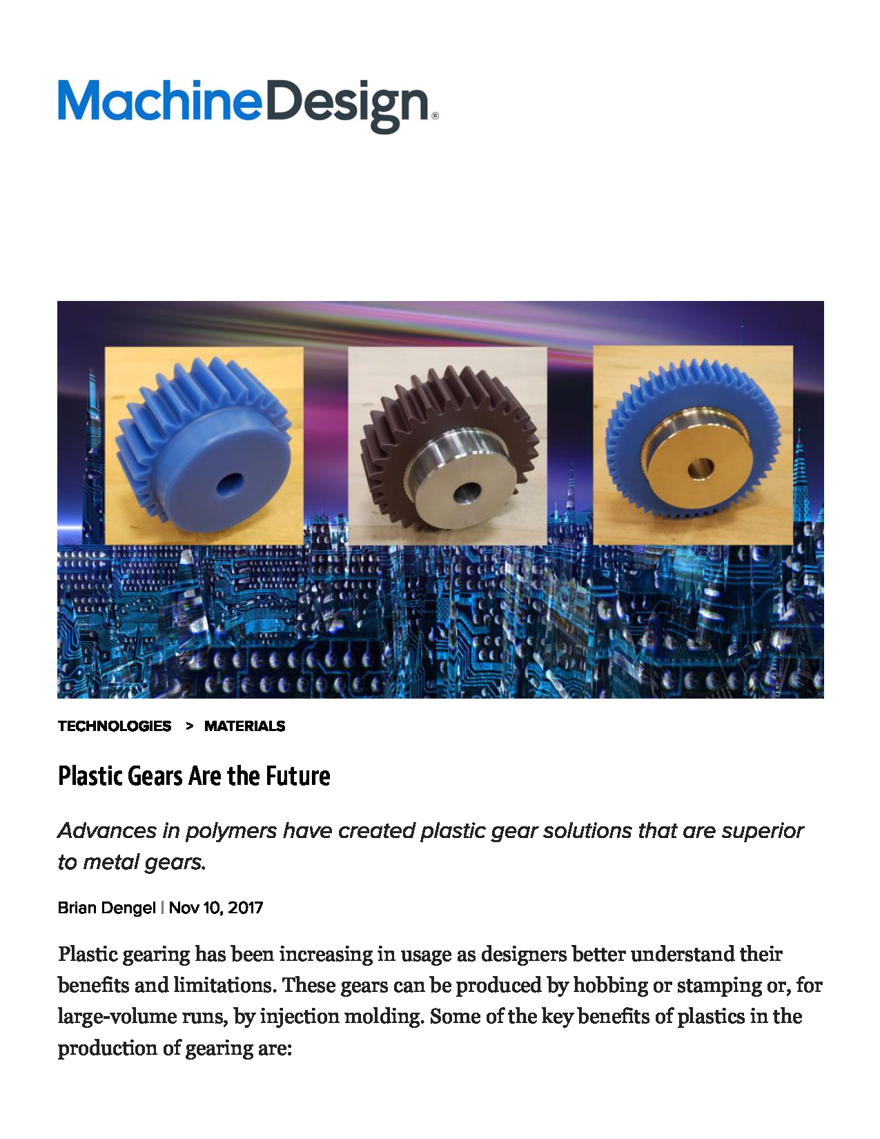 Advances in polymers have created plastic gear solutions that are superior to metal gears.