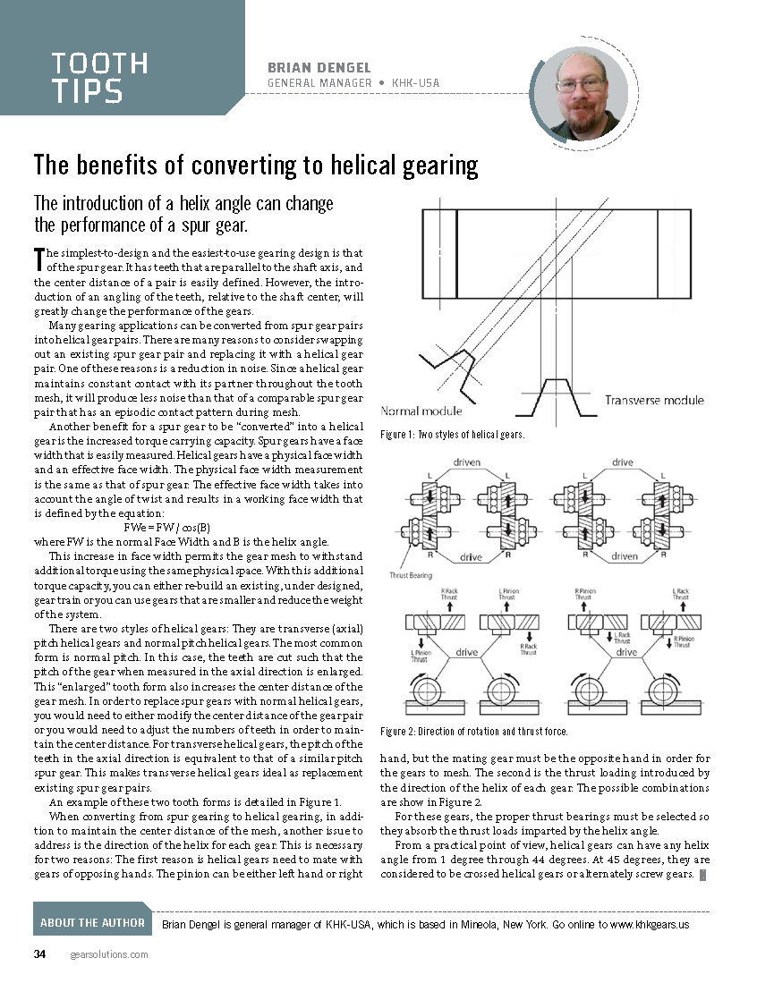 The introduction of a helix angle can change the performance of a spur gear.