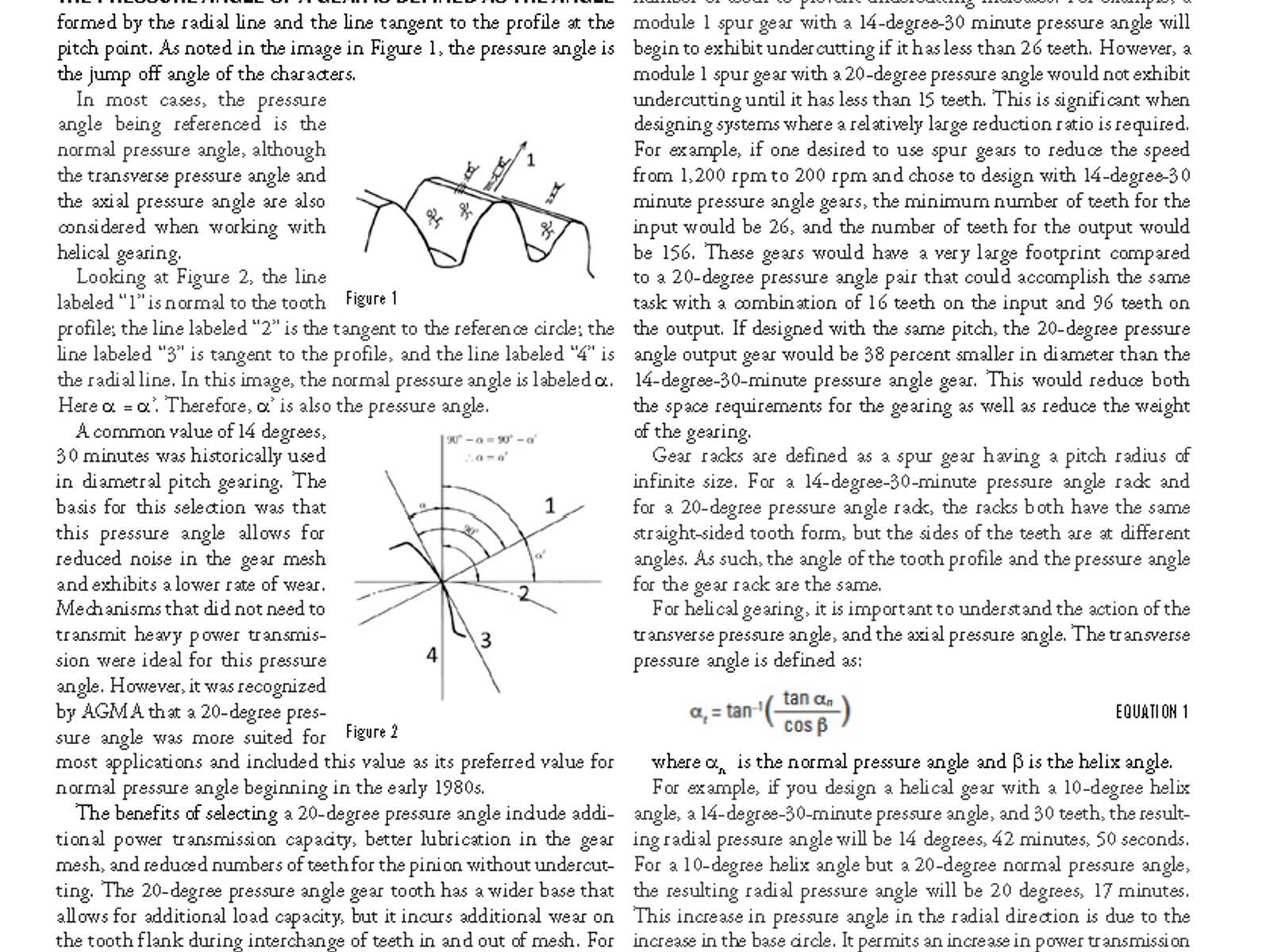 Understanding the Choice of Pressure Angle in the Design of Spur or Helical Gearing